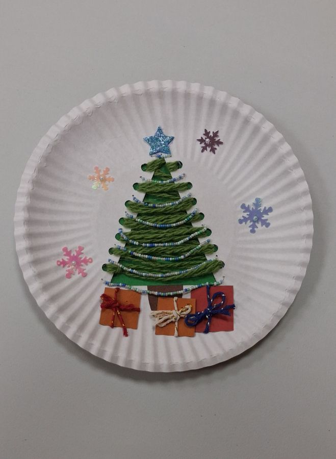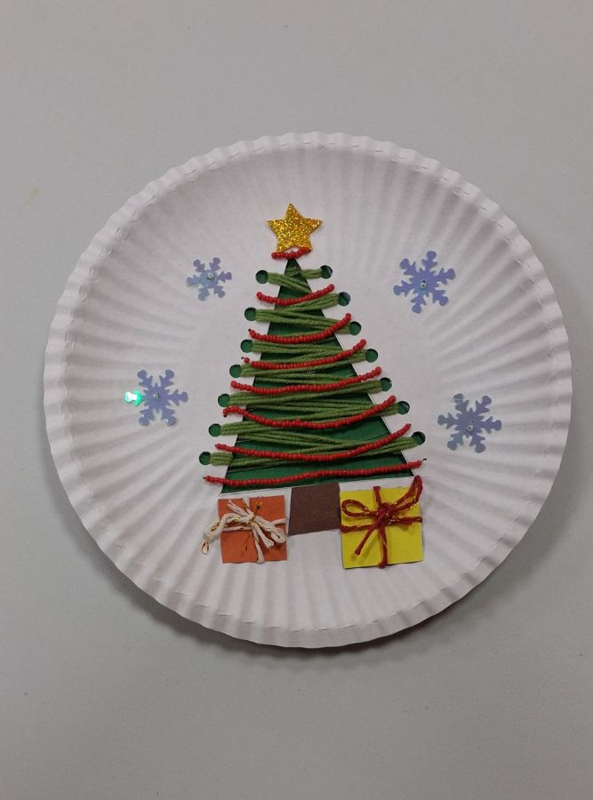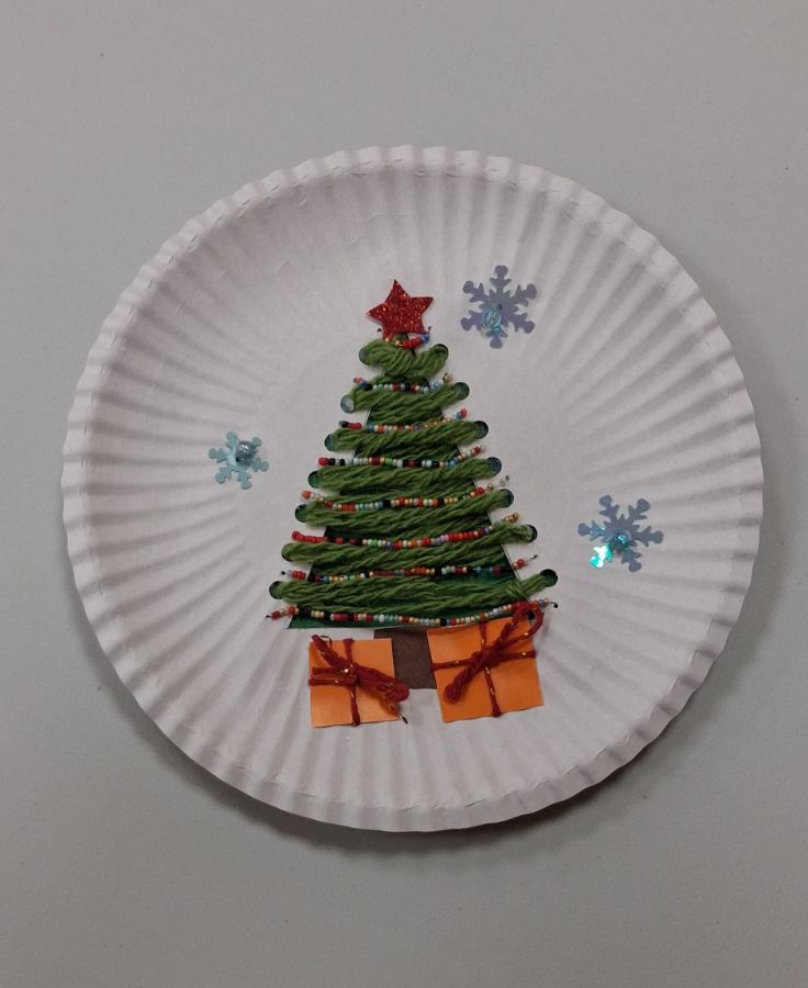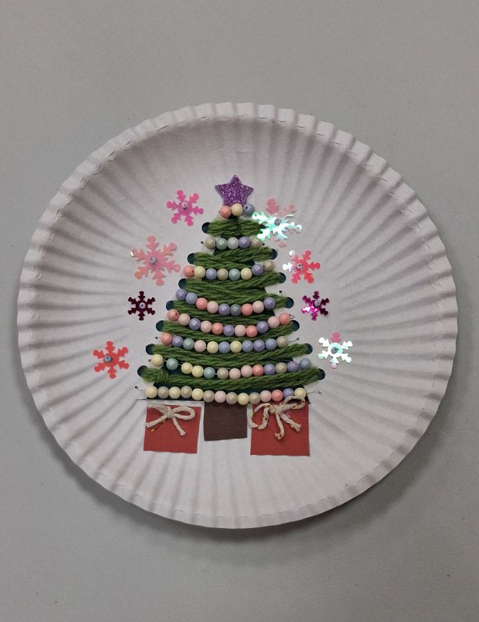 "Новогодняя мастерская" в Доме творчества продолжает работу. Ребята сделали панно с использованием бисера «Ёлочка-красавица» и ёлочные игрушки «Домики».